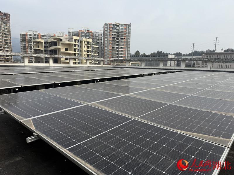在湖北烟草金叶复烤有限责任公司恩施复烤厂,成品仓库屋顶整齐排列着成片的光伏板,犹如给建筑戴上了一顶太阳帽。这些光伏板将吸收的光能转化为清洁电能,直接供应厂区生产用电。